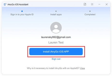 - Sign in using your Apple ID credentials. then Click the “Install iAnyGo iOS App” button to initiate the installation on your iPhone.