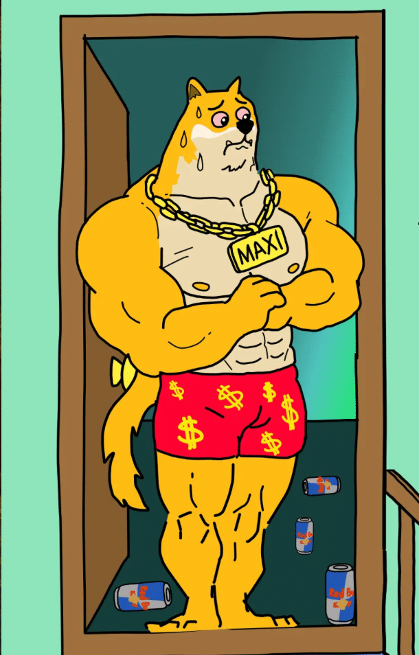 Maxi Doge takes inspiration directly from Dogecoin, but with a twist. It embraces the “gym bro degen trader” aesthetic, featuring a muscular version of Doge obsessed with high-leverage trading.