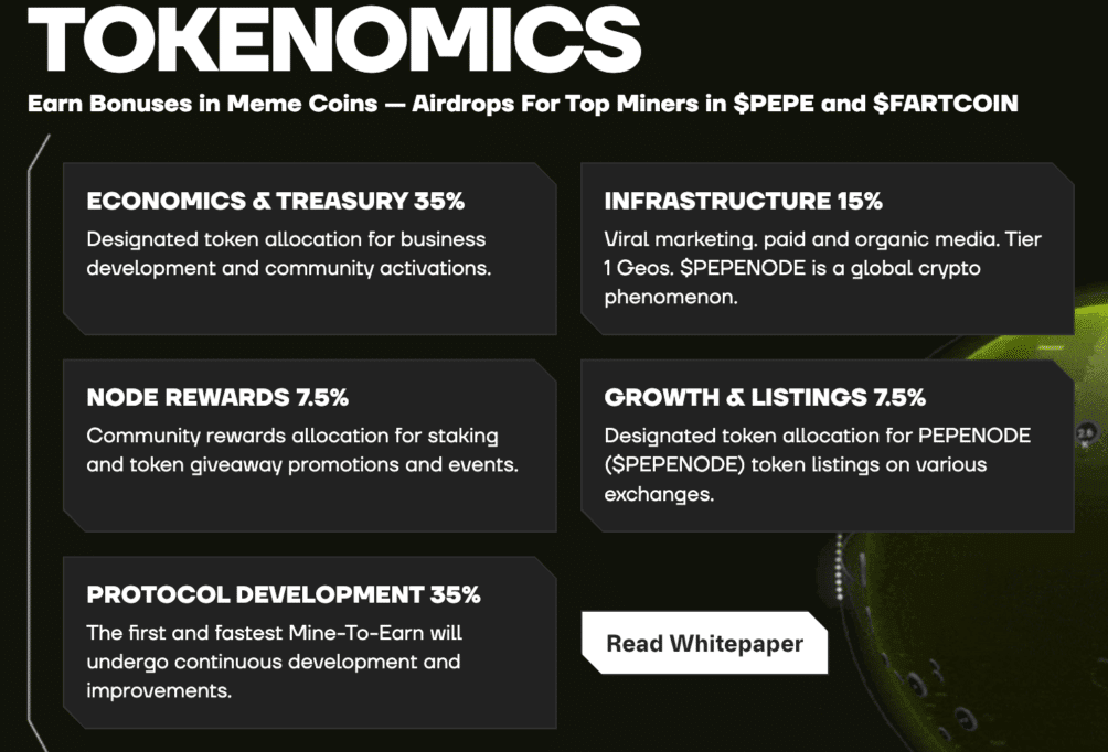 In the fast-moving world of crypto, blending fun with function is no small feat. PEPENODE manages to do both. Its “Mine-to-Earn” model democratizes mining by turning it into an engaging, browser-based game – one that rewards creativity, strategy and participation.