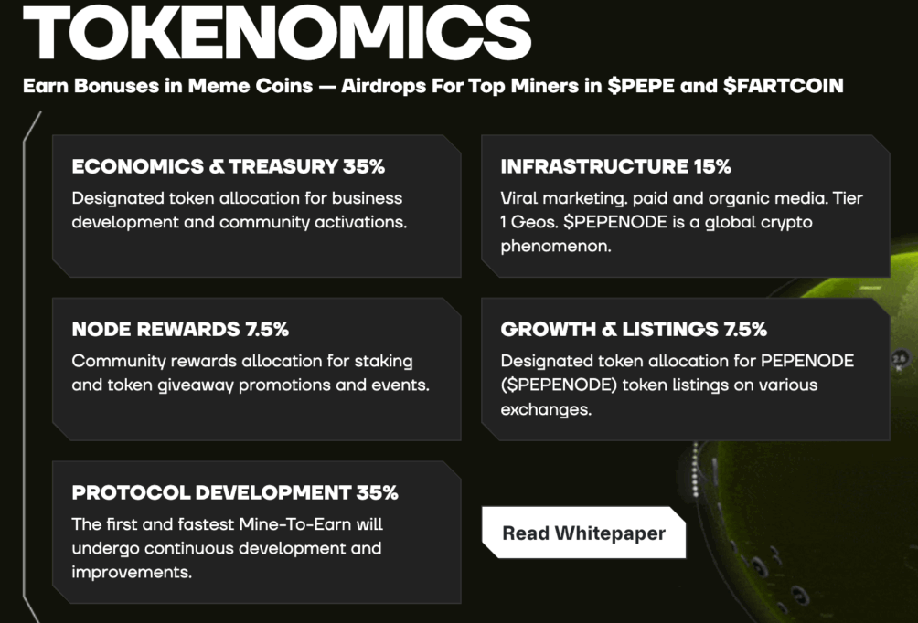 Pepenode isn’t just another meme token chasing virality. It represents an emerging category that merges entertainment, tokenomics and yield – a model dubbed Mine-to-Earn.
