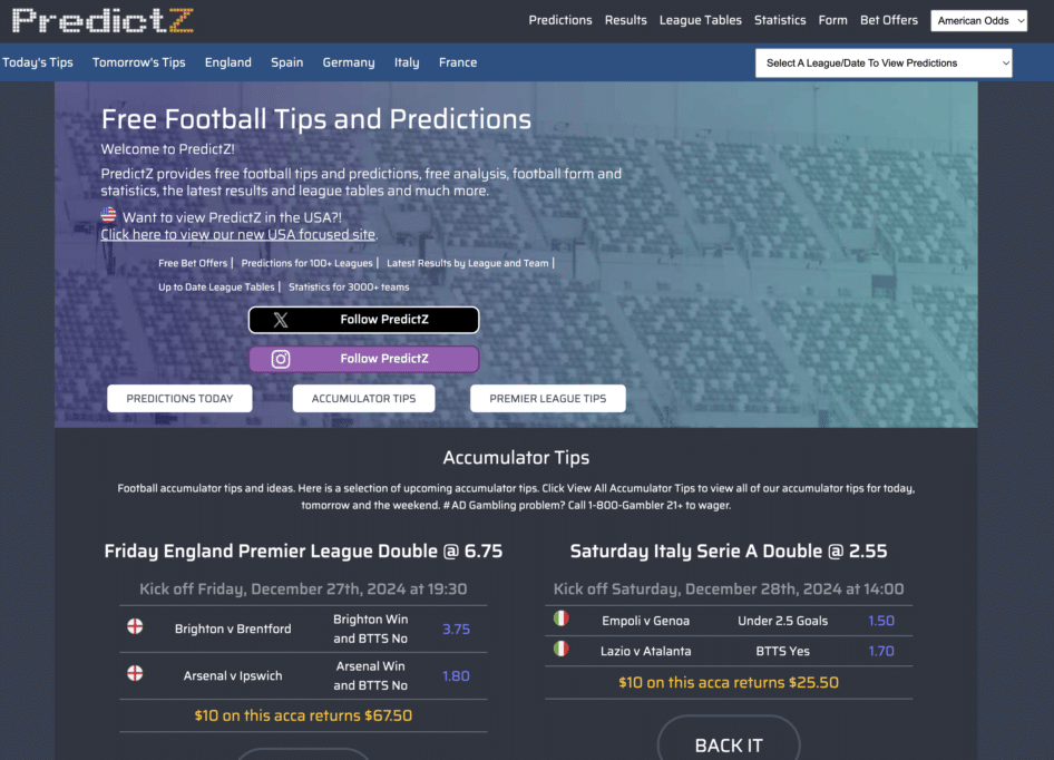 As a trusted name in the industry, Predictz delivers forecasts based on a blend of statistical analysis and expert opinions, making it an excellent resource for bettors who value simplicity and accessibility in football predictions. Additionally, the site offers a wide range of betting markets and features, making it a top choice for casual punters.