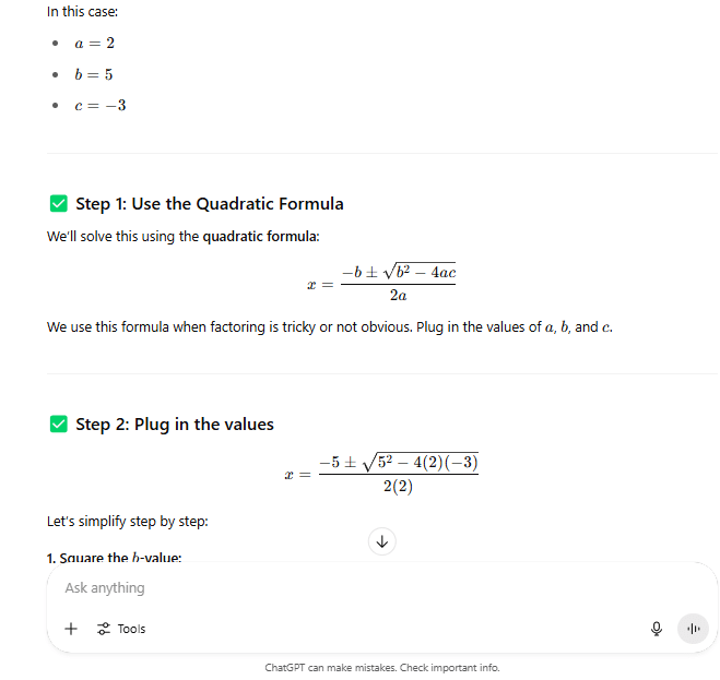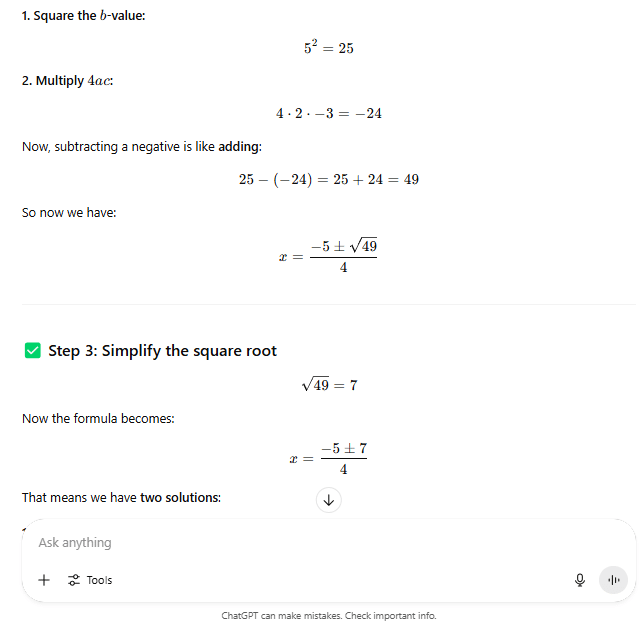 Quality: DeepSeek went in-depth, first listing the different methods to solve the problem. Then it walked through each method step by step. It kept the tone conversational, which made everything easy to follow. ChatGPT also provided a step-by-step solution, but it focused on one specific method. It spaced out the explanation, explained why it chose that method, and used a tone that helped me follow along easily.
