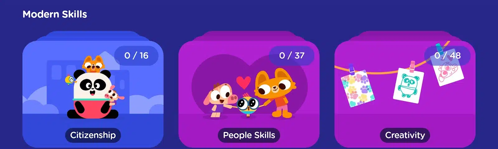 The app also highlights “Modern Skills” through three categories: Citizenship, People Skills, and Creativity. These areas focus on social-emotional learning, community awareness, and creative expression. With 16, 37, and 48 activities, respectively, children can develop empathy, responsibility, and imagination. This section reflects Lingokids’ commitment to nurturing well-rounded learners beyond traditional academics.
