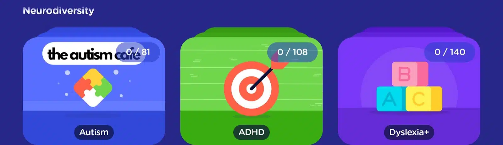 Lingokids demonstrates a commitment to inclusive learning through specialized content paths. Children with autism can access 81 activities developed in partnership with The Autism Café, ensuring appropriate pacing and sensory considerations. The ADHD-focused section contains 108 activities designed to accommodate shorter attention spans and movement needs. 140 dyslexia-friendly activities incorporate visual and auditory supports, making reading and language acquisition more accessible. Additionally, Dyscalculia housed 60 activities.