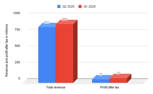Consequently, the telco’s revenue dropped by $48 million (5.3%) from $899 million in March to $851 million in June. Profits after tax also fell 28% from $77 million to $57 million within the same period.