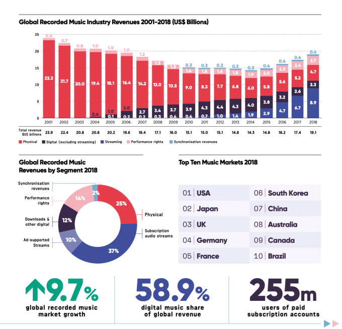 Around the world, streaming platforms like Spotify, Apple Music and Tidal have taken over music distribution from the traditional channels. According to the International Federation of the Phonographic Industry (IFPI)’s Global Music Report 2019 (pdf), streaming  now accounts for about 47% of global music revenue.
