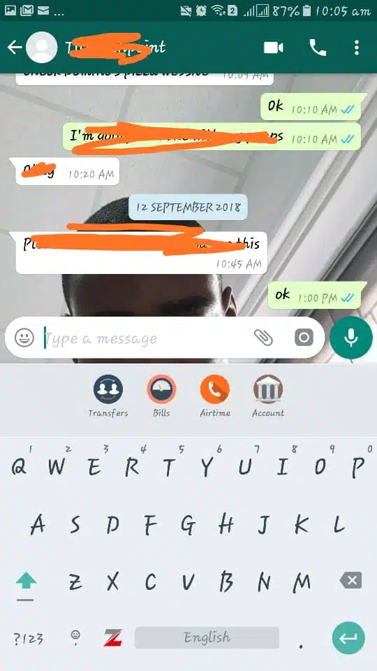 Imagine you are chatting with your tailor on WhatsApp. After sending them a picture of the beautiful style you saw on Instagram earlier in the day, you discuss the cost of achieving the look and request for their account number.