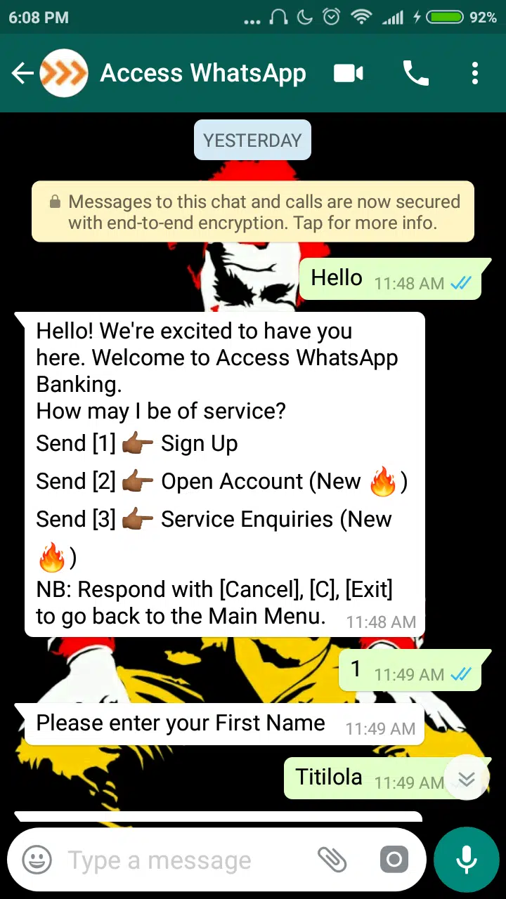 Using Access Bank on WhatsApp is very similar